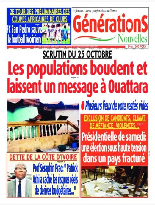 Navigation de l’article REVUE DE PRESSE DU SAMEDI 25 OCTOBRE 2025. Cameroun : des manifestations massives éclatent à Douala et dans plusieurs villes après l’appel d’Is