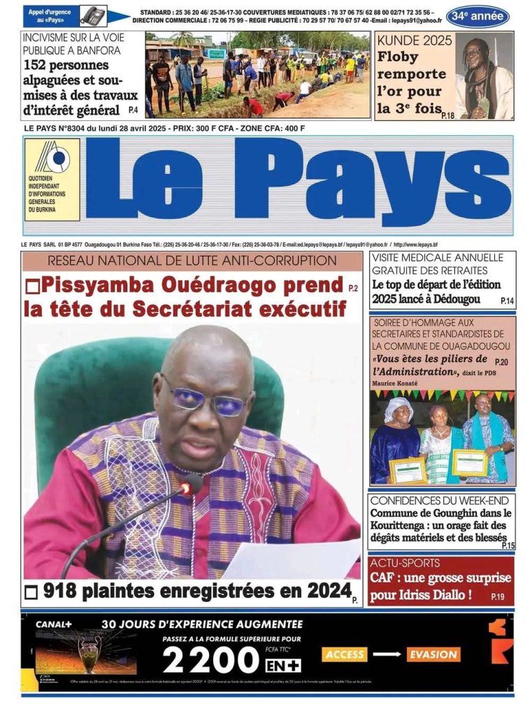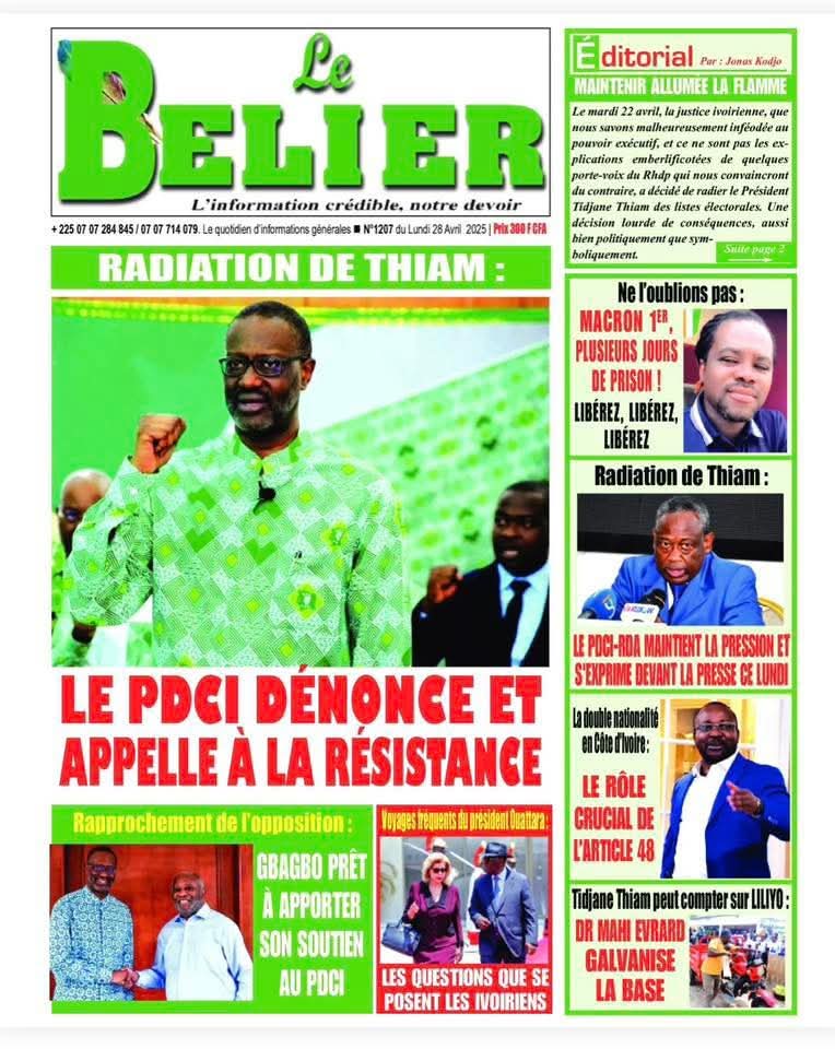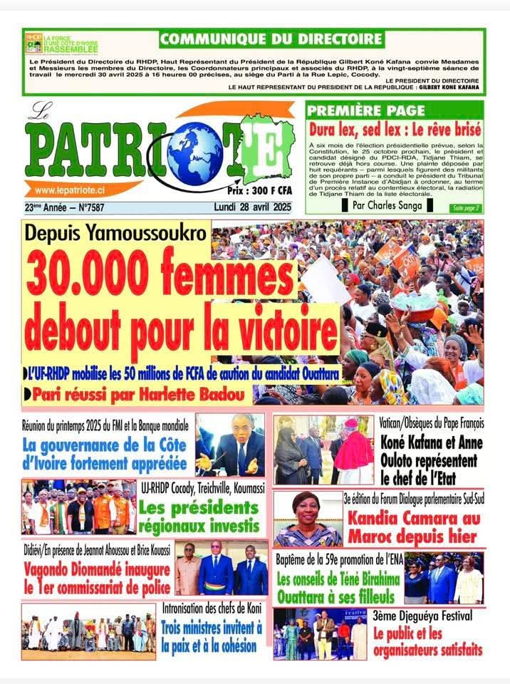 REVUE DE PRESSE DU LUNDI 28 AVRIL 2025.