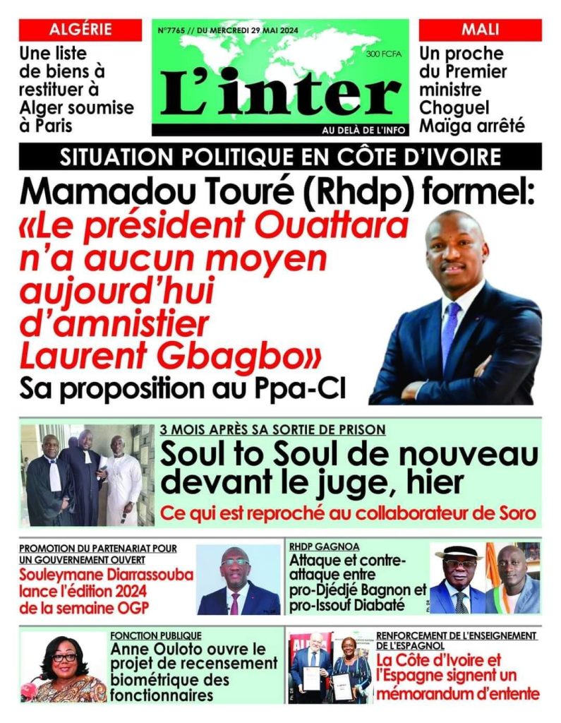 REVUE DE PRESSE DU MERCREDI 29 MAI 2024.