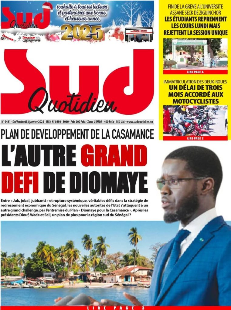REVUE DE PRESSE DU VENDREDI 3 JANVIER 2025.